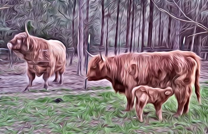 After a while, we moved them out into the area we had fenced around our pines. They loved it there as there was a lot more shady areas. There is a nice little creek on our property, and this allowed them to cool off when needed, and it saved on our water bill! After another year of growth, Merida was finally bred. We had moved both Merida and McLeod across the driveway into a little rye grass field to let them finish off the rye grass. Merida delivered her first calf on a wintery, rainy night. Cows are generally a little bit skittish in nature, and they really don’t want their humans around when they are calving, but not my Merida. Jeff and I were out in the field with her and stayed with her the whole time. We kept McLeod at a comfortable distance because he was after all still a bull. I’ve never had such a love for a cow in my life. We definitely have a special bond, and she knew that we were there to help.