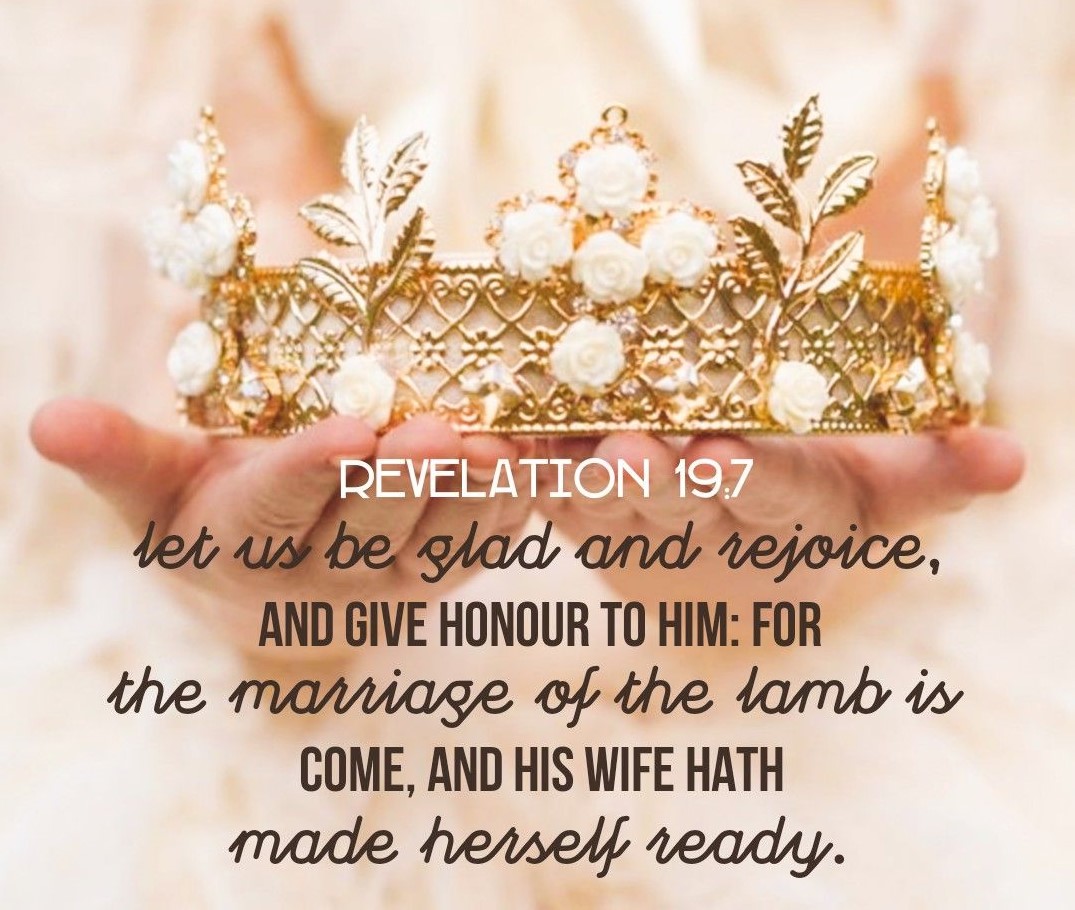 Revelation 19:7-9 Let us rejoice and be glad and give him glory! For the wedding of the Lamb has come, and his bride has made herself ready. Fine linen, bright and clean, was given her to wear.”