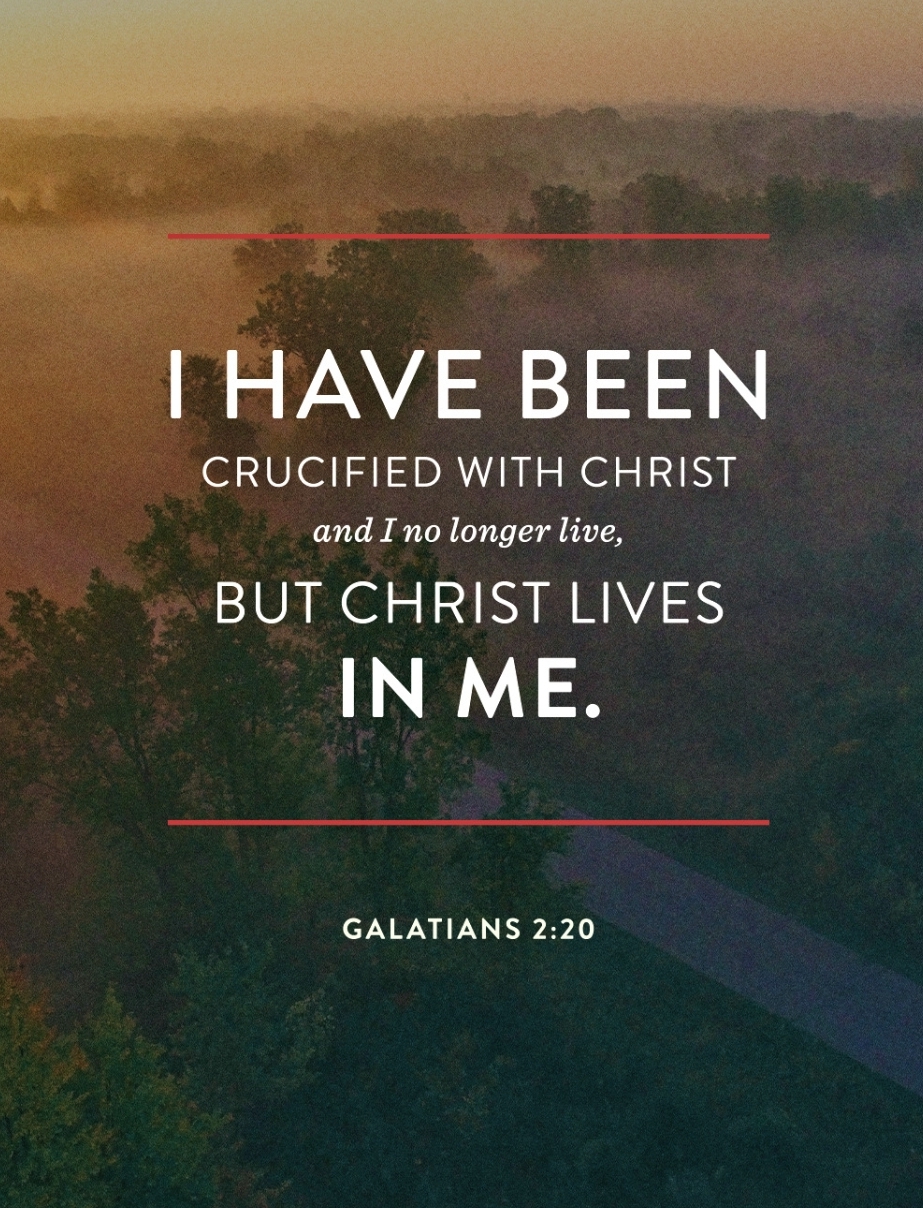 Galatians 2:20 My old self has been crucified with Christ. It is no longer I who live, but Christ lives in me. So I live in this earthly body by trusting in the Son of God, who loved me and gave himself for me.