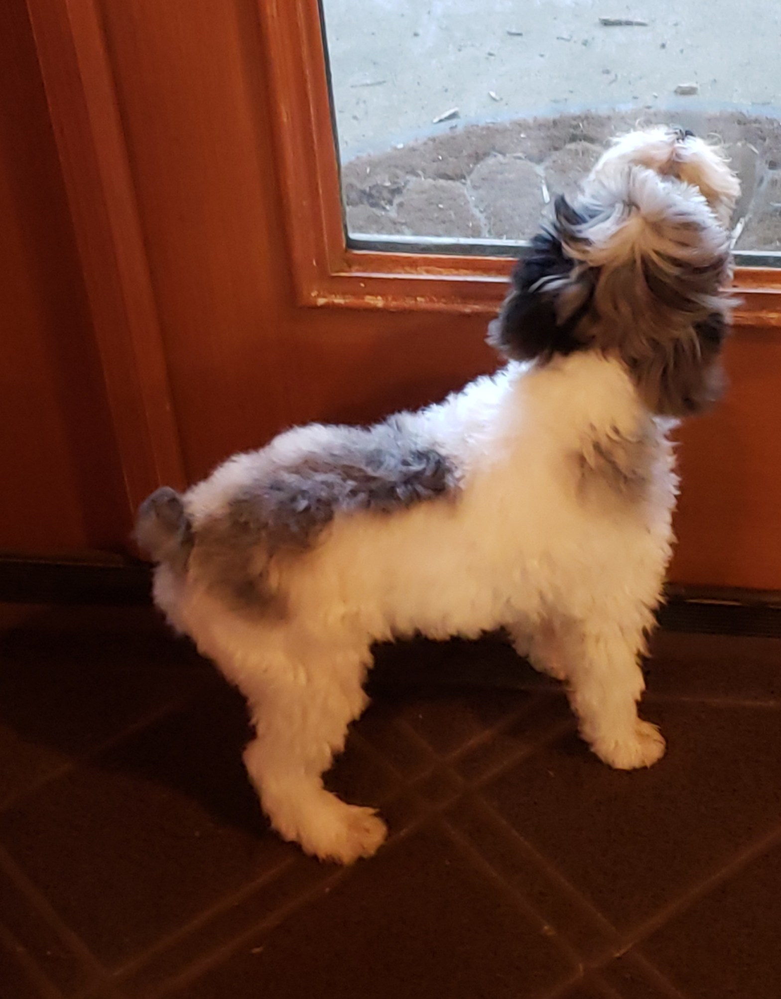 Last night, my husband and I were watching a movie in the living room. Our 14 week old mini Schnauzer, Holly, was barking incessantly at her reflection in the glass of the French doors in the dining room. All of a sudden, Holly let out a shrill, loud yelp, and began barking and running like lightening through the dining room and living room, and she ran into the wall of the living room which was on the opposite side of the house from where she started. My husband and I looked at each other and laughed before we jumped up to see who or what scared her so badly. I knew before I even got up that it was likely Jace, my daughter’s Schnoodle. He is jet black, and when it is dark outside, you can not see anything but the white of his eyes. Jace was perched with his paws on the glass of the French door peering in, and apparently when Holly caught sight of him unexpectedly, it scared her fiercely. She was afraid and she ran.