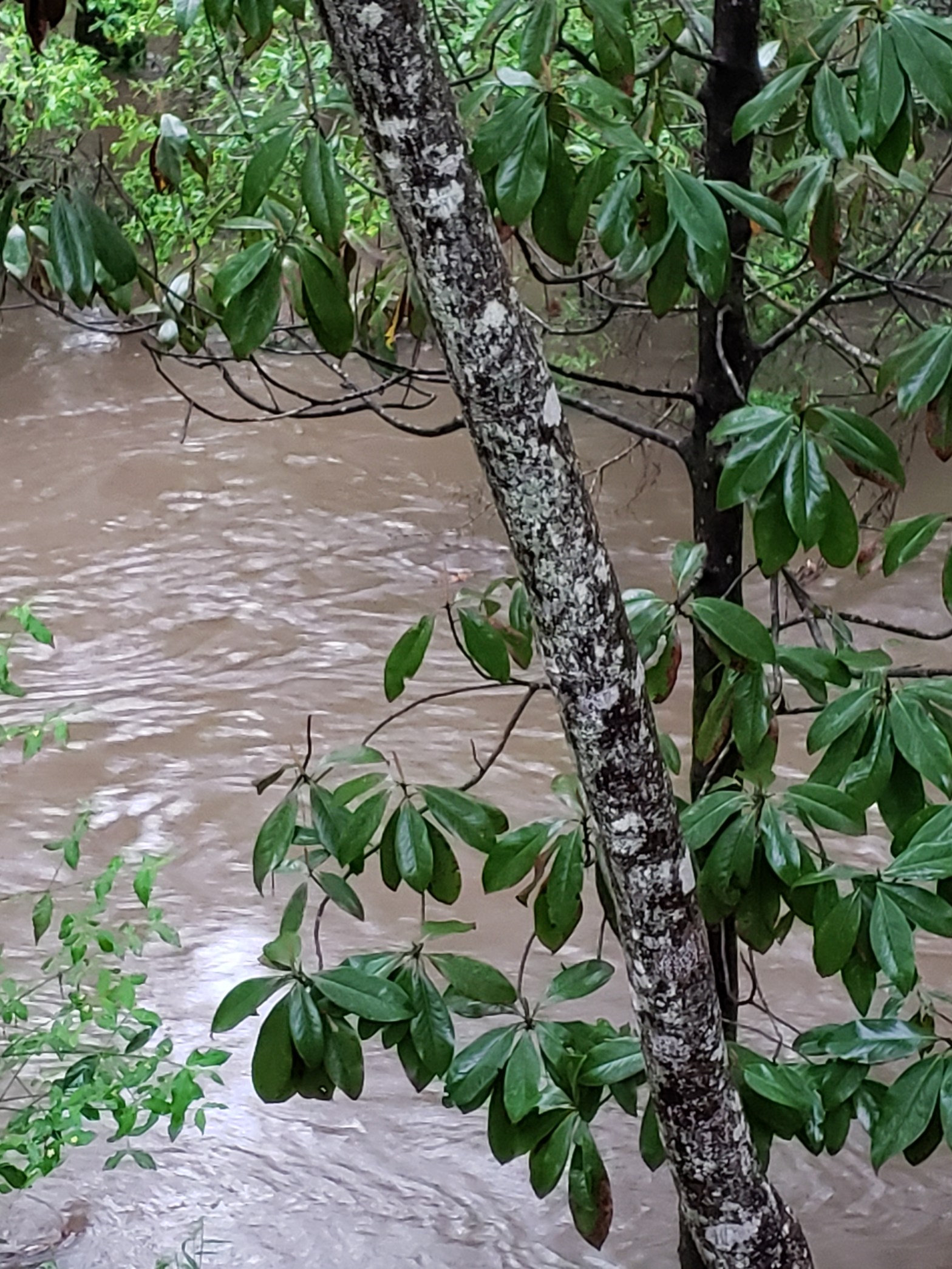 Last night our creek rose. We live on eighty acres, and a little creek called Whitesand Creek runs through our property. Our back deck overlooks the creek. Most of the time, it is shallow enough to actually walk across. Oh, you would get wet if you did, but you wouldn’t drown. The water flows gently by with a comforting sound that I have enjoyed so much through the years. However, if it rains a lot and the rain comes down fast, the creek swells. Our house is up high, and praise God, our home has never flooded. It would take a monsoon for the water to reach our home, but our driveway, well that is another story. Our driveway is about a half a mile long, and there are two different culverts along the drive in which natural branches of water from the creek flow through. When we get a lot of rain in a short period of time, the driveway floods. This morning, we are flooded in. The creek has risen. The driveway is flooded. My husband ventured out to check the water company that he operates only to call me back and tell me not to leave the house. He said the water nearly came over his hood of his truck as he drove down the driveway. Yes, the creek has risen, and I’m going to stay put for a while. I actually don’t mind that one bit! I am off today for the first day this week, and I’m going to enjoy the little bit of time while the creek has risen!