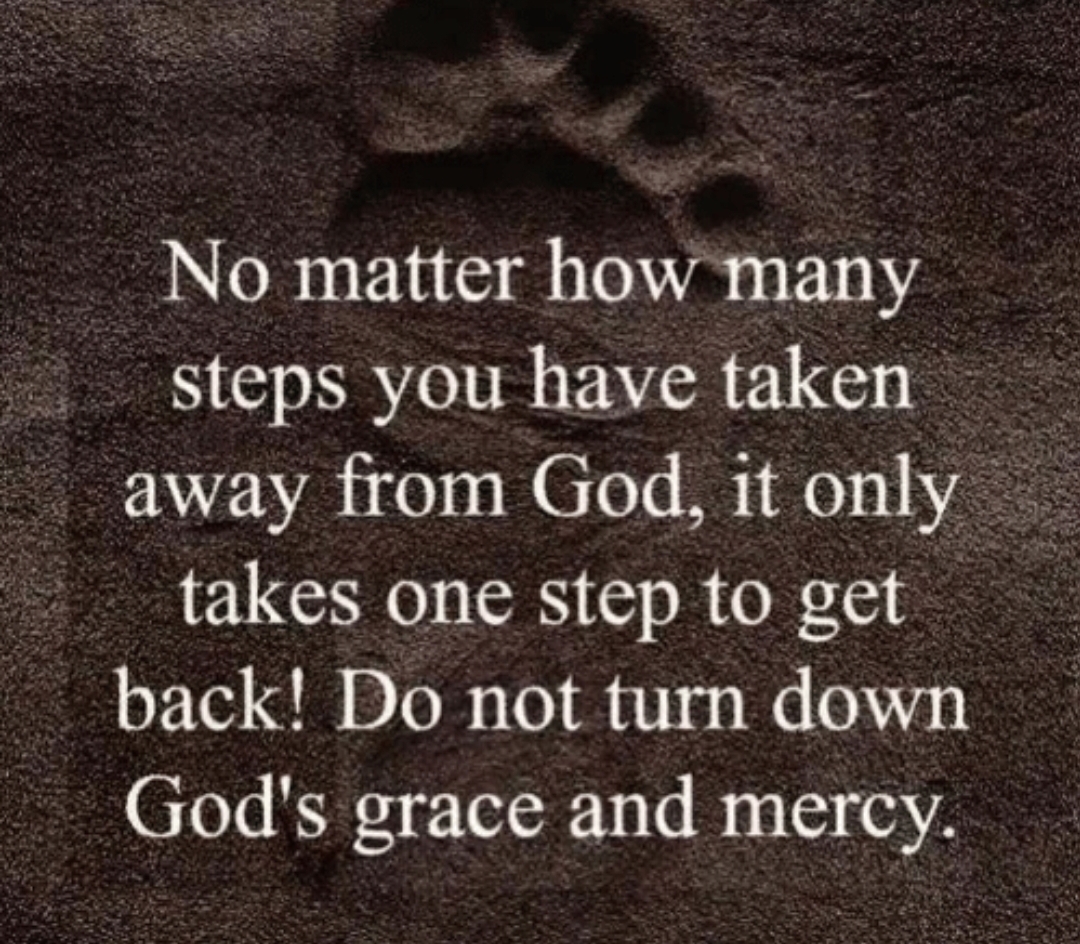 I don’t know where your heart is today. You may feel you have strayed too far from Christ. You may feel that your sin is too big to be forgiven. You may feel that you aren’t worthy. The fact is NO ONE is worthy of salvation. No one is worthy of God’s grace and mercy, but God took care of our unworthiness when He sent His Son to be the sacrificial Lamb. Jesus made us righteous. We only need to accept that tremendously amazing gift that keeps on giving. No matter how many steps or even miles you’ve traveled away from Christ, it only takes one step to get back to Him! Don’t turn away from God’s grace and mercy. We are not good enough, but HE IS!