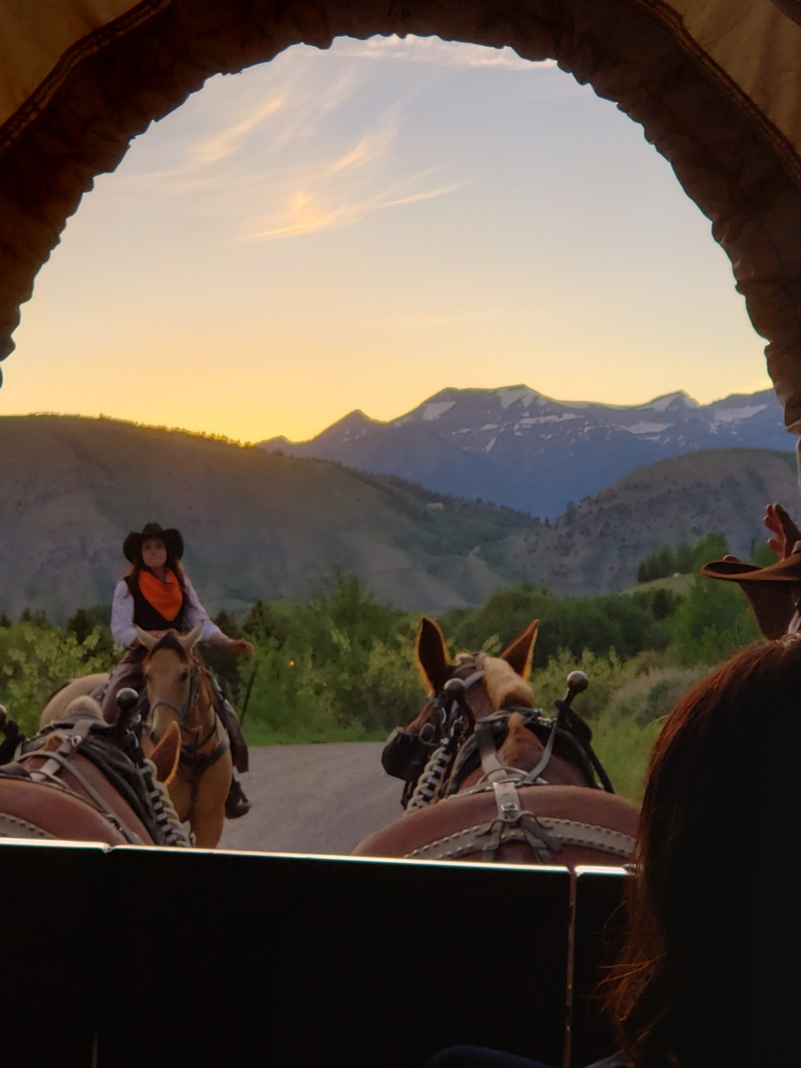 My husband, Jeff, planned this vacation, booked it, and handled all of the details. All I had to do was pack and go. I wasn’t sure what to expect, and I’ll admit that I was a bit leary, but as always everything turned out even better than expected. He booked an eight day vacation in the Grand Tetons in Wyoming. Oh, I’ve seen the Tetons first hand before and was very happy to return. The part I wasn’t sure about was the middle 4 days and 3 nights of the trip. Those days would be spent on a wagon train in the mountains, camping in cowboy tents….without the comforts of electricity….or running water. This country girl can adapt, but I must admit that I have a great fondness for electricity and hot showers!
