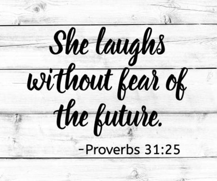 Proverbs 31:25 She is clothed with strength and dignity, and she laughs without fear of the future.
