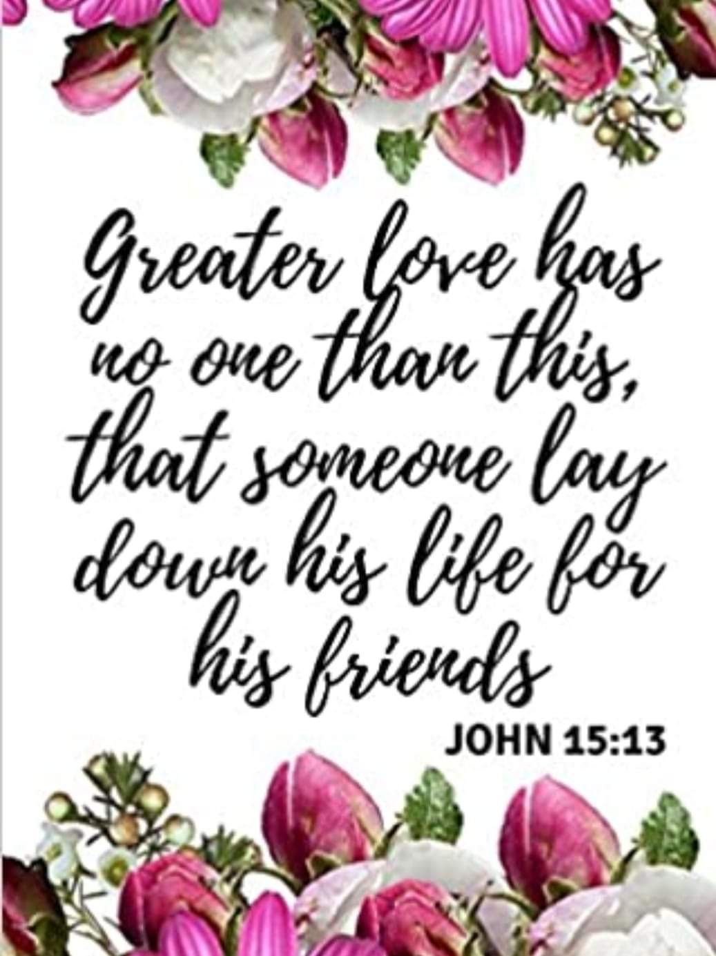 John 15:13 Greater love has no one than this: to lay down one’s life for one’s friends.