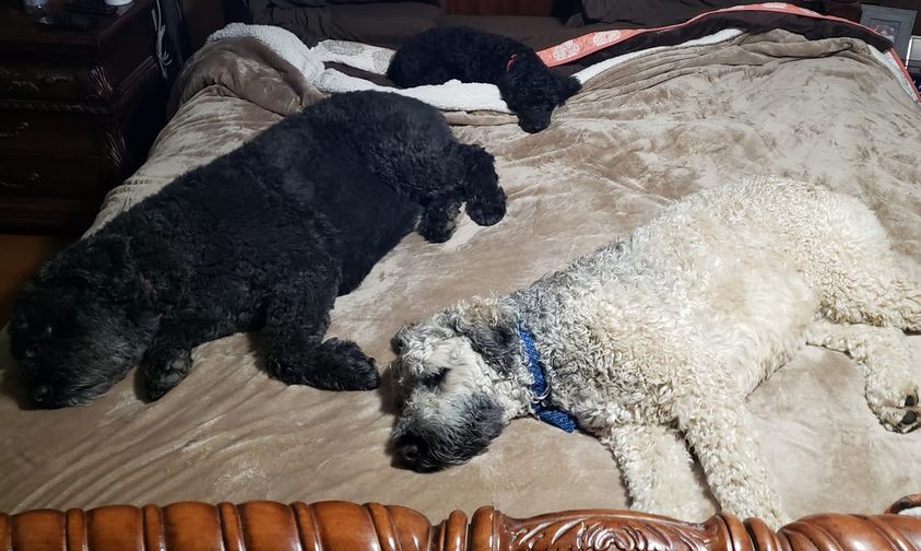 About an hour later, I realized that the big dogs had not yet returned from their morning outing. Sophie, our 100+ lb beautiful, black Bouvier des Flandres, and Bear, our 85+ lb fawn Bouvier des Flandres, absolutely love this cooler weather. South Mississippi heat is tough on their fluffy butts. Almost two hours passed before they finally decided to grace us with their presence. We live in the middle of 80 acres with a creek running behind the house and a cow field with a pond north of the house. I figured they had taken a trip to the pond to chase geese. I figured wrong. They were slightly wet, but that wasn’t the problem. They stunk to high heaven! Oh my goodness, the smell was bad. Apparently, they decided to roll around in the cow field.
